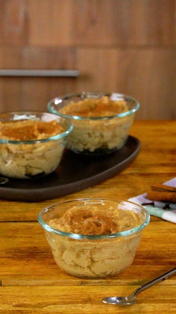Servir en platos individuales y enfriar. Decorar con canela en polvo antes de servir.